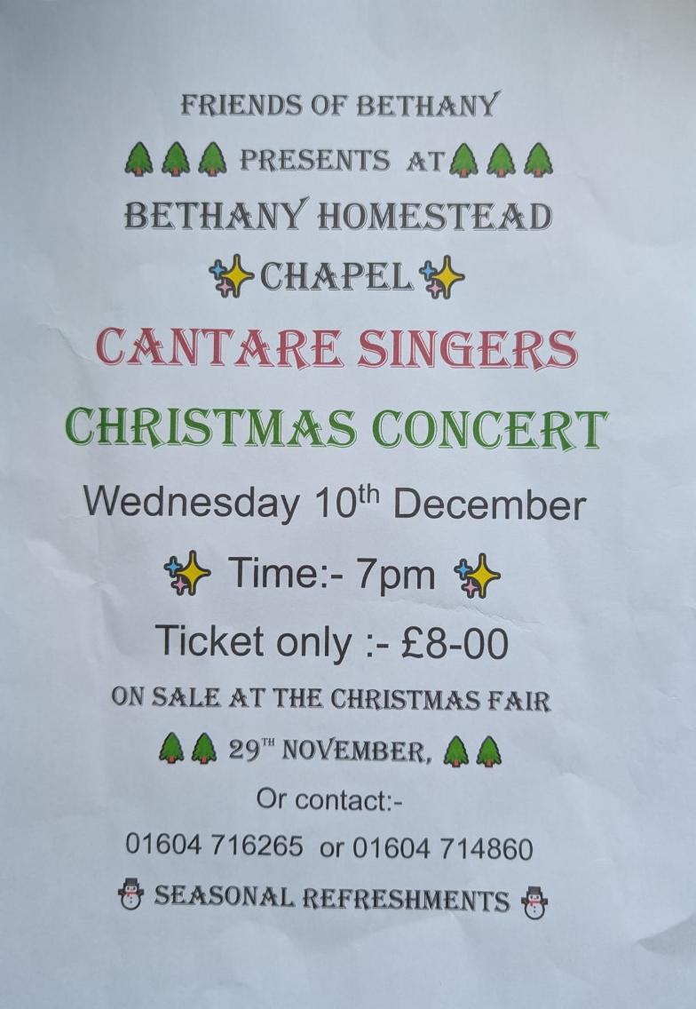 "I should like to express our thanks for the magnificent concert put on by the Cantare Singers" FTG Bird, Chairman of Appeal Fund, Bethany Homestead, Northampton.